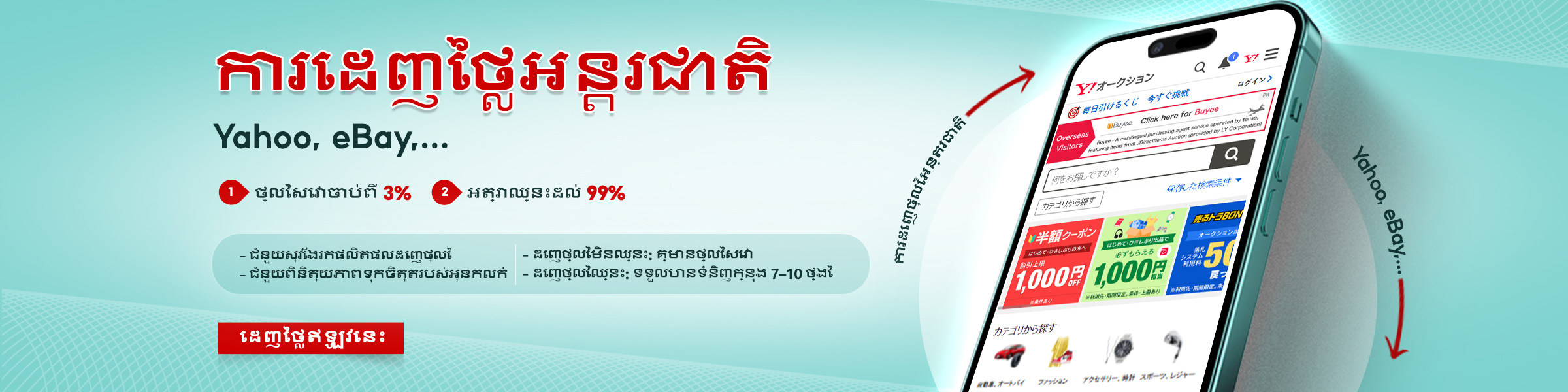 Micafi តំណាងឱ្យអ្នកដើម្បីដាក់ការដេញថ្លៃលើវេទិកាដេញថ្លៃអន្តរជាតិ ដូចជា eBay, Yahoo! Auction Japan ឬដៃគូដែលអាចទុកចិត្តបាន។