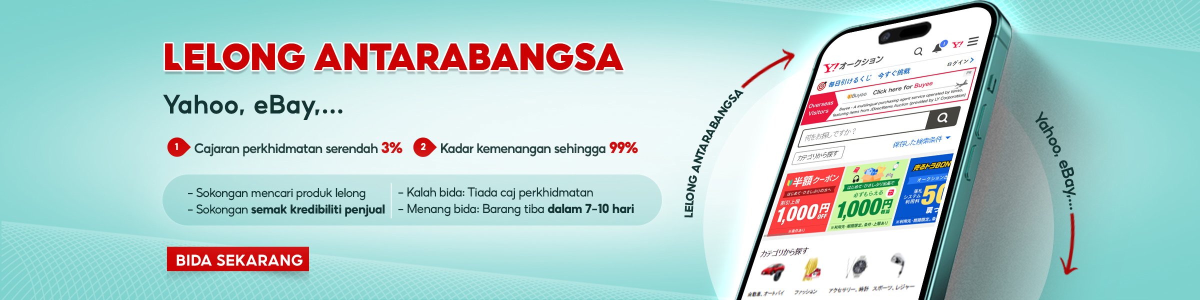 Micafi mewakili anda untuk membuat bidaan di platform lelongan antarabangsa seperti eBay, Yahoo! Auction Japan atau rakan kongsi yang dipercayai.